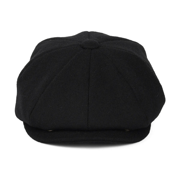 This black coloured Newsboy Cap is made of 100% melton wool and has a quilted satin lining and a grosgrain sweatband on the inside for a comfortable fit. The cap features a double snap brim at the front and to finish the cap off a Jaxon & James side pin. We hope you enjoy this fantastic new addition to the Jaxon & James line!