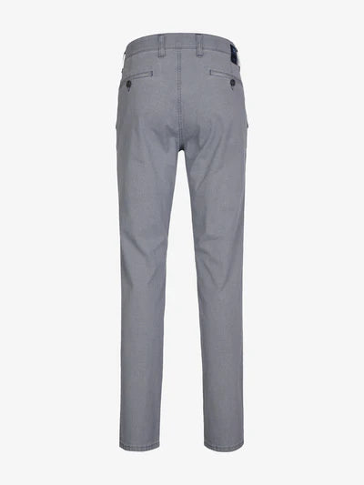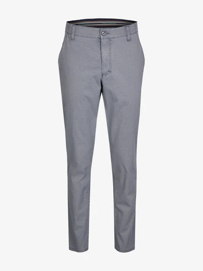 Comfortable flat front trousers with elastic comfort waistband and shirt stopper.