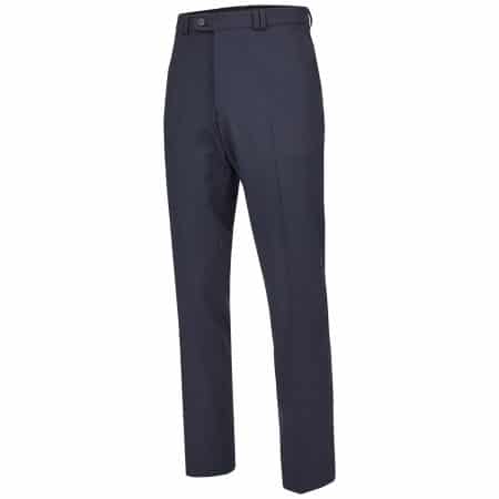 Comfortable flat-front trousers with an elastic comfort waistband in the latest wool-stretch mix quality.