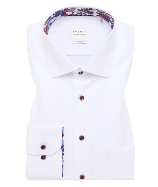 Opaque, non-slip and non-iron. This wrinklefree shirt only shows what it is supposed to show. It reliably conceals tattoos and body hair. With the opaque ETERNA COVER SHIRT, in a slightly tailored cut, you'll be way ahead in terms of fashion. As a half-ply shirt made of 100% cotton (twill, non-iron), the opaque COVER SHIRT offers excellent comfort. The trendy patches on the classic Kent collar and cuffs give it a modern touch. The hem is rounded at a normal length so that this shirt (with a breast pocket) can also be worn casually outside the trousers. Always the right fit, always stylish - order our unique ETERNA COVER SHIRT today and experience the unrivalled quality and workmanship for yourself.
