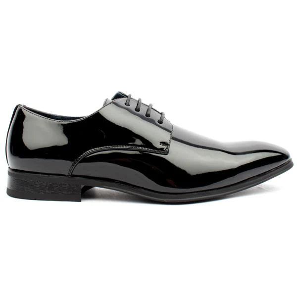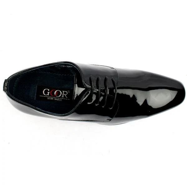 Elevate your style with the Goor Patent PU Shoe in Black! These affordable and dressy mens shoes from the Goor Shoes range feature a sleek black patent upper and lace closure. Perfect for weddings and formal occasions, these shoes add a touch of sophistication to any outfit.