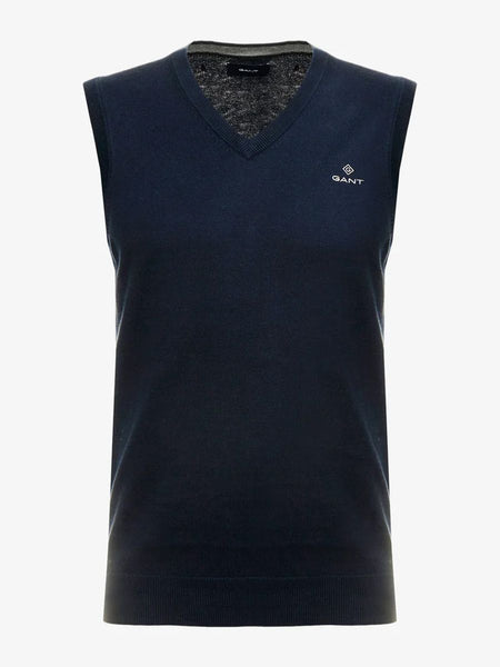 A sweater vest is a smart addition to any man's wardrobe, and this Gant version, in 100% cotton, is a classic. With a V-neck and our signature GANT logo embroidery at the chest, this sleeveless sweater is lightweight enough to layer over a button-up shirt or a T-shirt. Features a cotton fabric, regular fit, v-neck and ribbed hem.