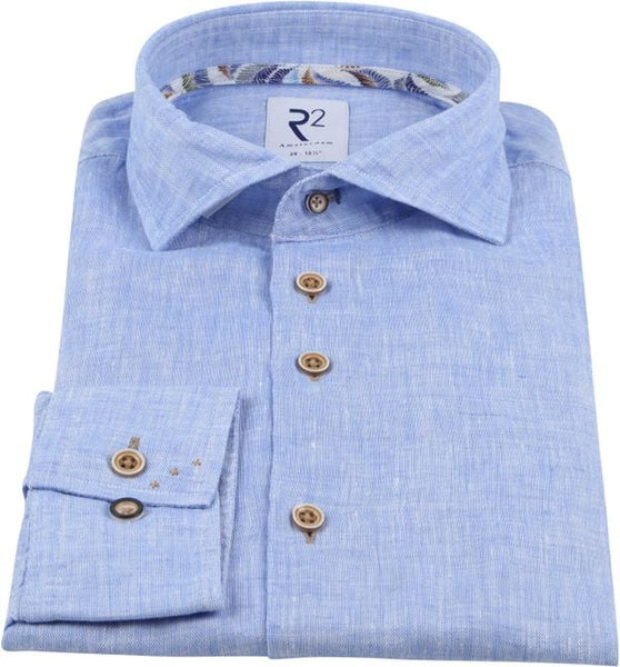 Add a fashionable touch to your outfit with this casual shirt from R2 Amsterdam. This shirt has a light blue colour. The widespread board, single cuffs and contrasting buttons compliment the stylish look of the shirt. This gives the men's shirt a fashionable look and provides your outfit with a cheerful touch.