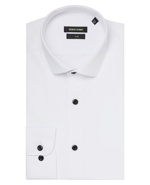 Remus Uomo Slim Black Button Shirt White