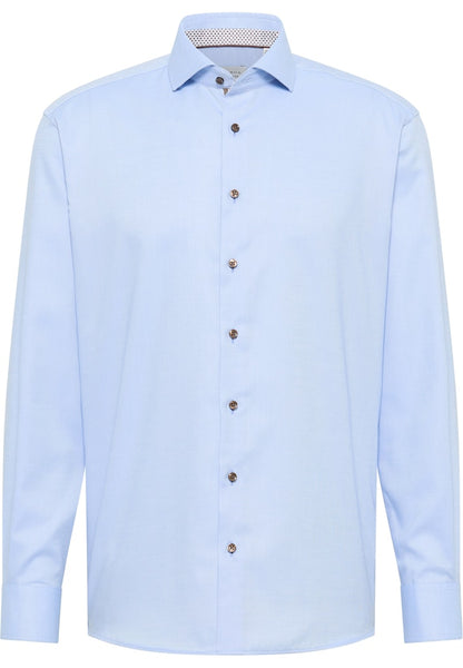 Timelessly modern style for men! With this structured natté shirt, you're always on the right track if you value sporty elegance. The term "natté" comes from French and translates as "braided." The cube-like appearance is achieved by the weave. The highly sculptural fabric has large pores and is therefore very breathable. The MODERN FIT cut appeals to those who want a more fashionable interpretation of the classic look. Constructed from pure, non-iron cotton, this shirt is not only easy to care for but also perfectly comfortable to wear. The trendy cutaway collar and the integrated band on the inside of the collar complete the look. The hem is rounded to a regular length, so this shirt can also be worn casually over trousers. Order today in the ETERNA online shop!