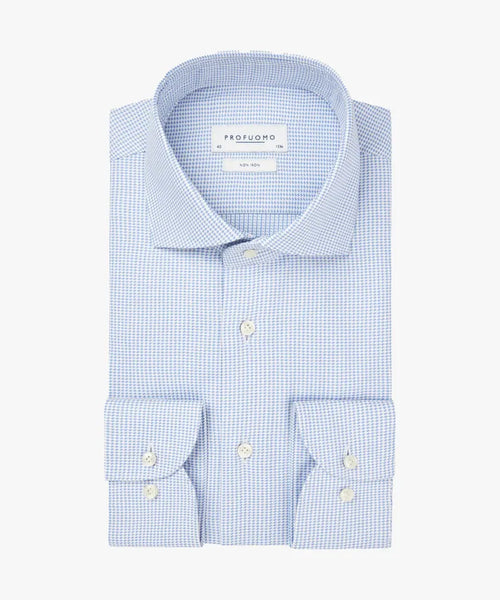 This blue shirt in dobby structure is a basic addition to your wardrobe. Simple, yet elegant. Perfect for any occassion. Non-iron and slim fit. The added 3% stretch provides just that bit of extra comfort you need.