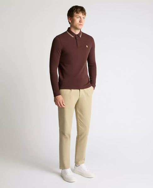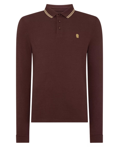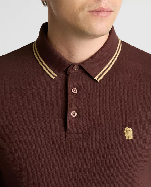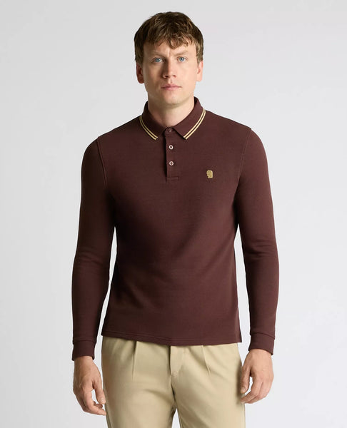 Remus Uomo Longsleeve Pique Polo Dark Brown